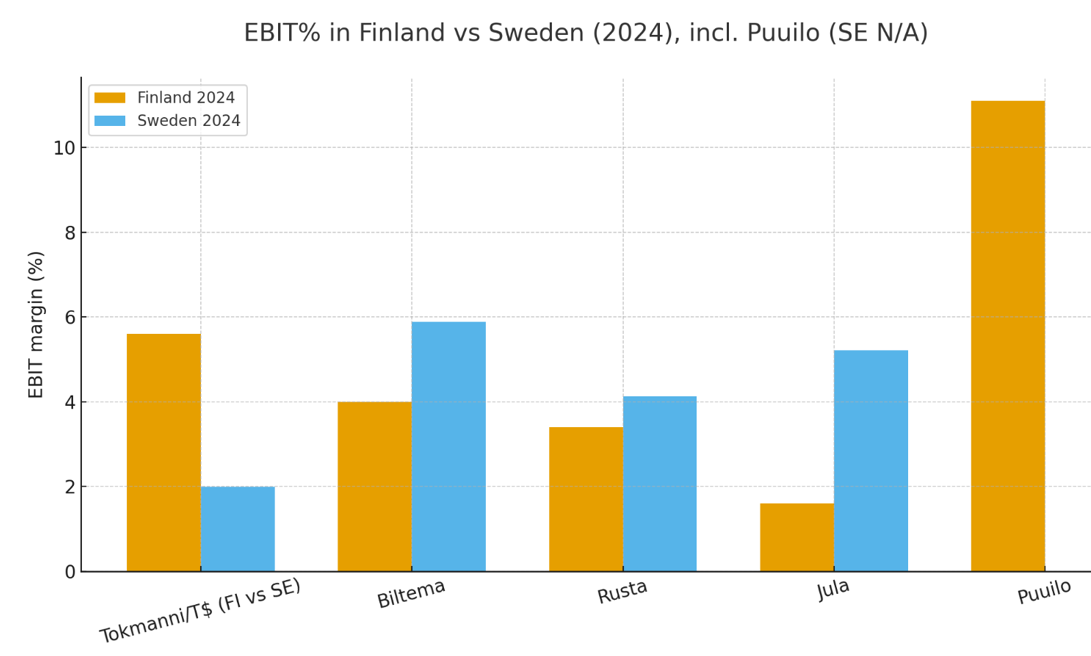 Eikö tuossa kaaviossa nimenomaan kaikkien paitsi Tokmannin kannattavuus ole selkeästi parempi Ruotsissa (“naapurimaassa” ellet itse Ruotsissa asu) kuin Suomessa?