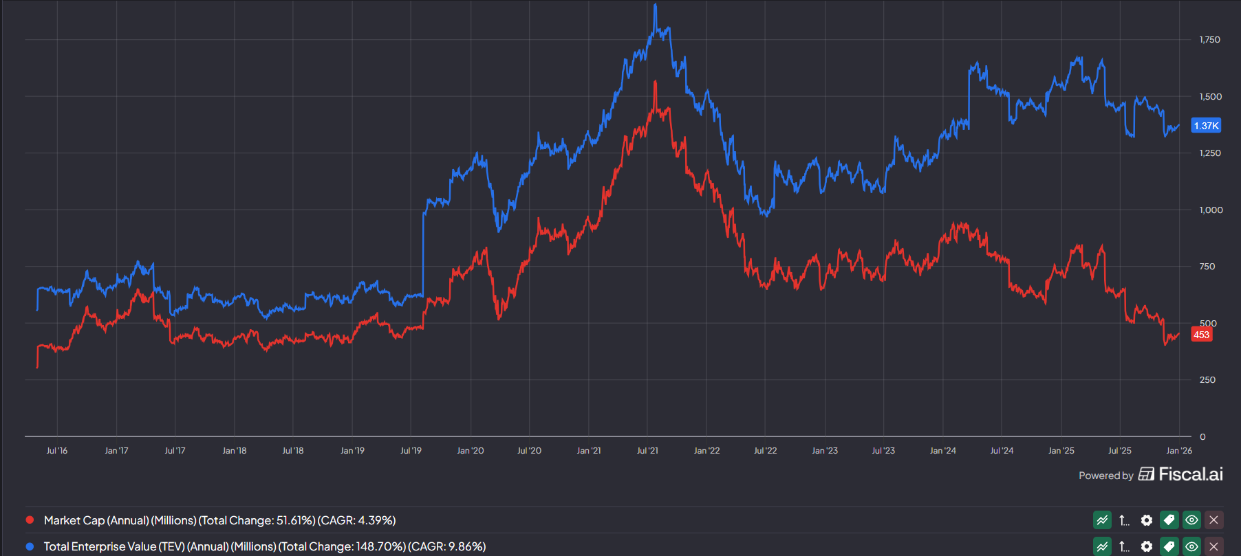 Itâs also interesting to note that although Tokmanniâs market value has taken a real beating, the enterprise value has developed less dramatically, specifically because of the aforementioned debt load.