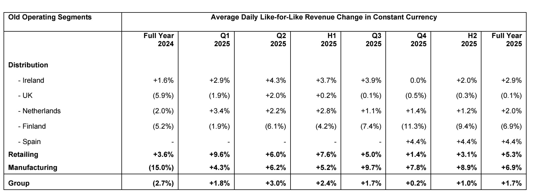 Average daily like-for-like revenue in Northern Europe declined by 0.5 per cent for the year and was down 2.9 per cent in the Period. Modest growth in the Netherlands, driven by strong project related sales, was more than offset by declines in Finland which reflected unusually mild winter weather and ongoing weakness in the economy.