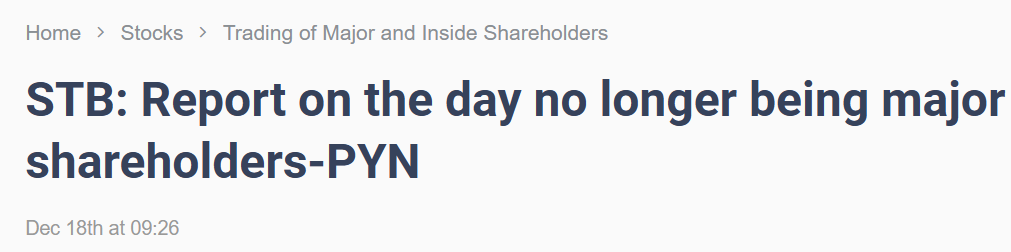 Sacombank stiger kraftigt, og jeg tjekkede, om der var kommet en meddelelse. Tilsyneladende har PYN solgt hele deres position eller størstedelen af den? Jeg faldt nemlig over en kort meddelelse: