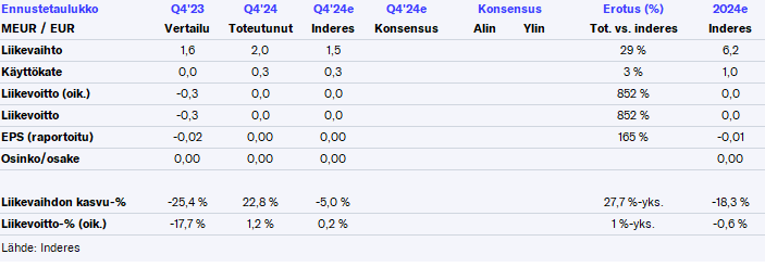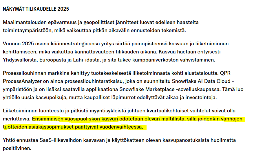 But then it seems to be organized to accelerate growth. Inside information: QPR Software Plc is exploring possibilities to implement a share issue in the first quarter of 2025; The company has received irrevocable commitments to subscribe for shares worth at least 1.4 million euros - Inderes