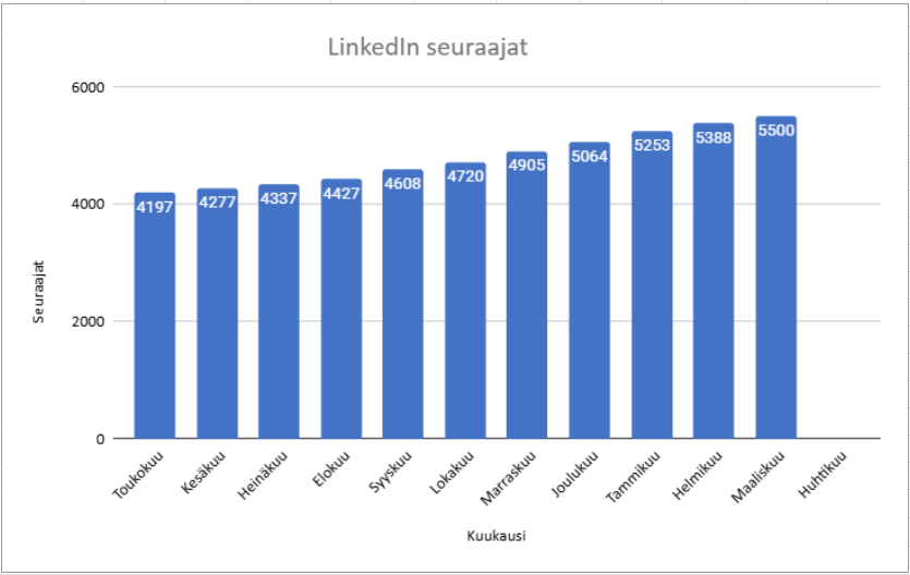 Regarding LinkedIn followers, growth has been slower than at the end of the year. In February, the number of followers grew by 2.6% and in March by 2.1%. Comparative figures are not quite available yet, but on an annual basis, growth looks strong. Compared to the end of May, followers have increased by 31%, which hopefully will also start to be reflected in revenue development.