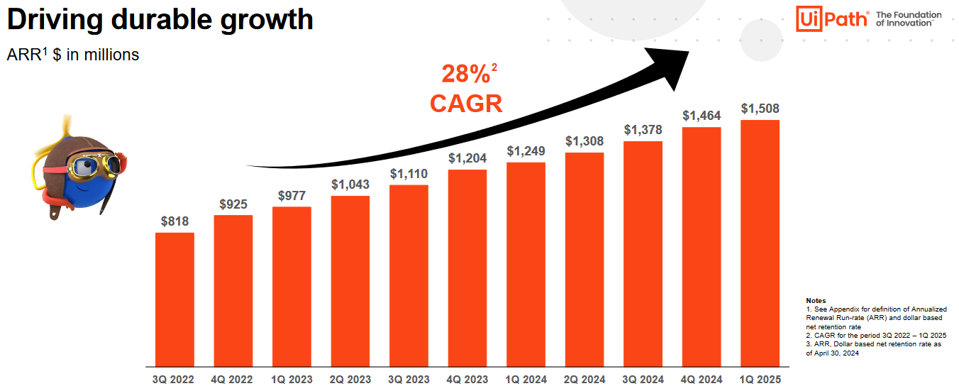 RPA is quite often put in the same category as process mining, even though it is actually quite different in practice. Both, of course, are used to make processes more efficient. UiPath https://ir.uipath.com/ released its interim report, which looks quite good at least in terms of the top line. Recurring revenue has been growing steadily during the period shown.