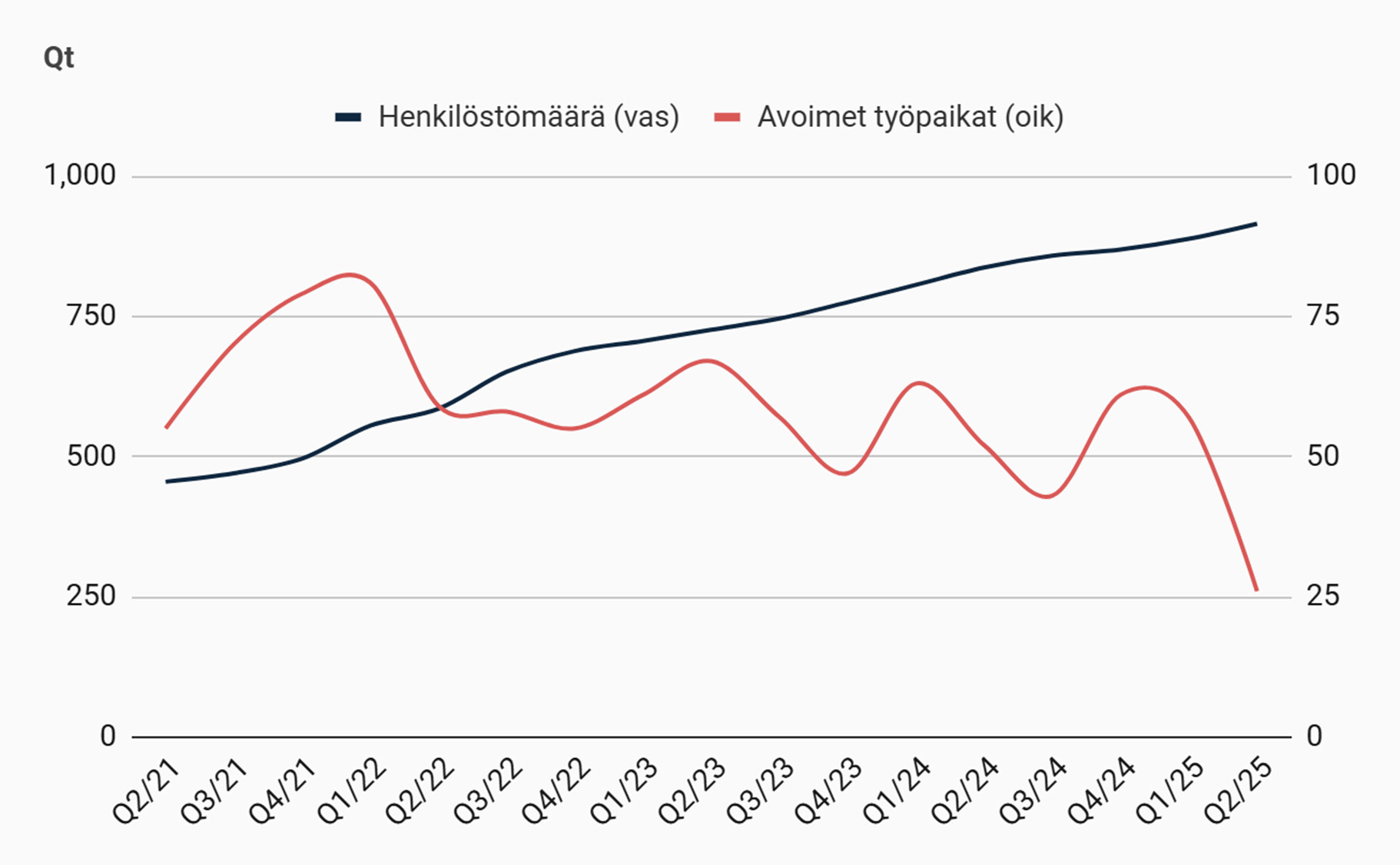(Materiaalit ja Palvelut +104% - tämä on pääosin asiakaskonsultoinnin ostamista kumppaneilta eikä siis kulu vaan laskutetaan asiakkaalta + päälle Qt:n oma kate, näkyy liikevaihdon kasvuna)