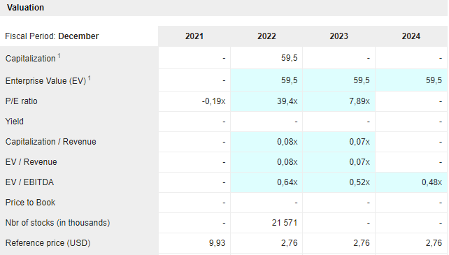 Eli Enterprise Value / Revenue on noin 1 tai vähän alle, kunhan nyt saadaan tarkistetut luvut.