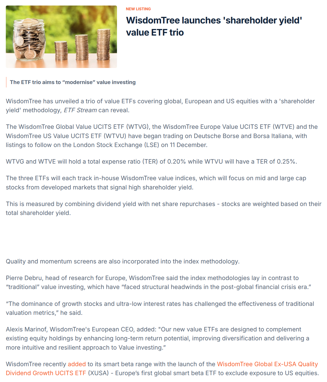 The Global Core Equity UCITS ETF and the Global Targeted Value UCITS ETF are listed in GBP and USD in London, and EUR in Frankfurt. Both funds are registered in Finland, Germany, Ireland, the Netherlands, Norway, Sweden and the United Kingdom.