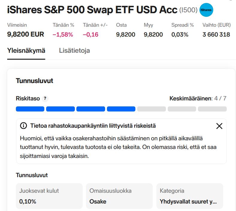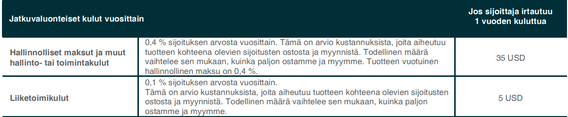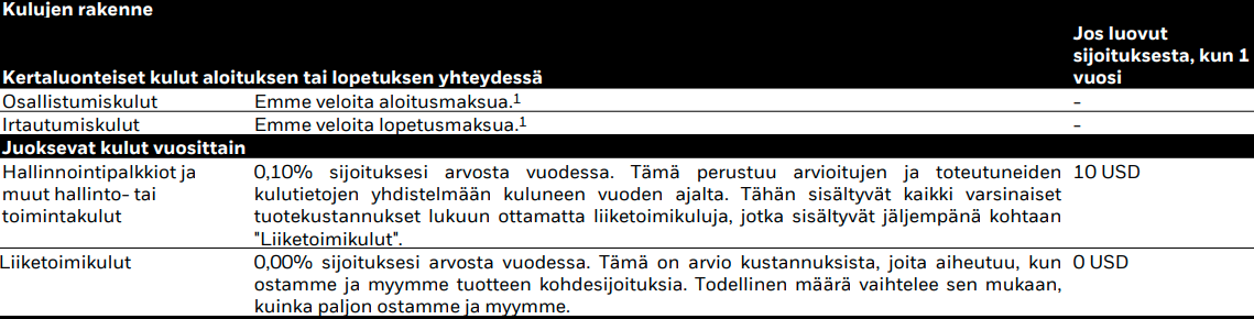 Eräs jenkkilän paska firma(Blackrock) nosti juuri kulujaan I500:sta 0,05% → 0,1% samaan aikaan, kun muilla on käynnissä kilpajouksu kohti nollaa. Saa nähdä tuleeko korotuksia muihin etf:iin.