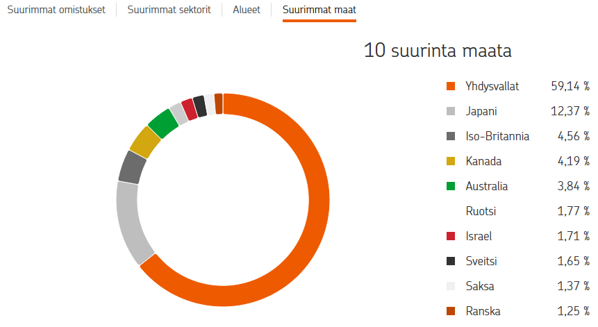 OP:n Maailma/Amerikka, Eurooppa, Aasia, Suomi ja Pohjoismaat indekseillä saat jopa ihan siedettävän maantieteellisen hajautuksenkin. Kannattaa OP:n sivuilta tutkia mitä MSCI indeksiä mikäkin rahasto pyrkii seuraamaan yms.