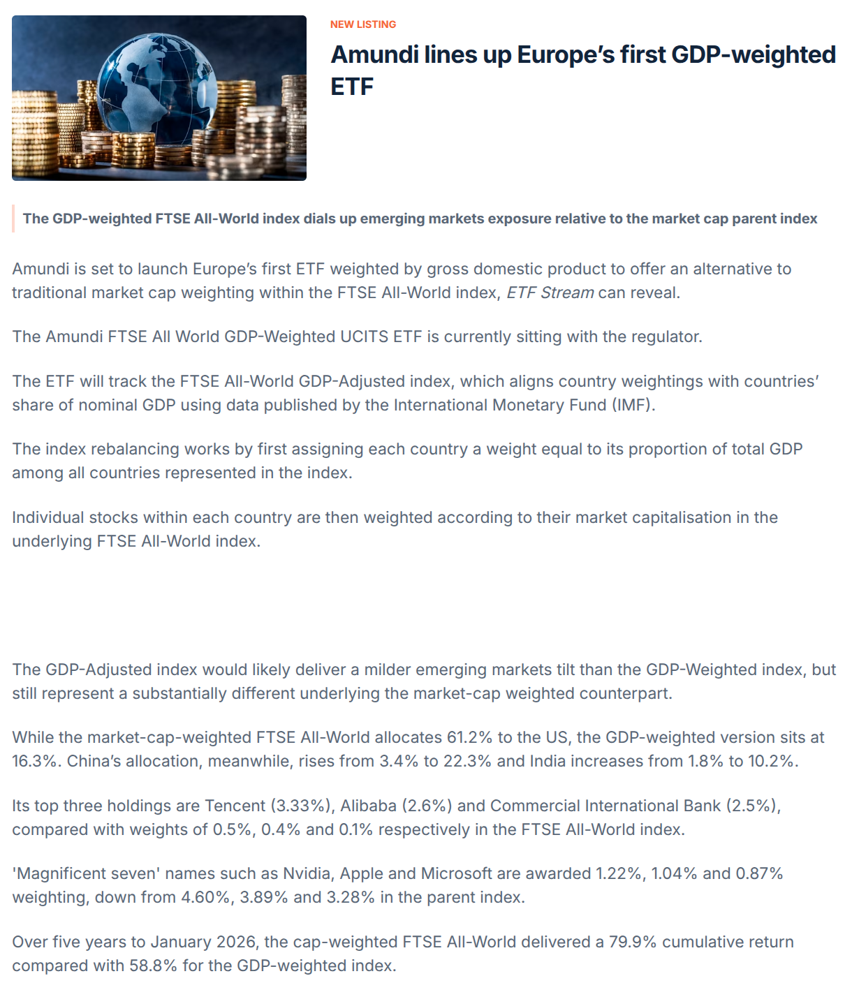 Amundi is launching a GDP-weighted all world ETF. The weightings are a bit different