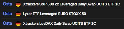 Xtrackersin ja Lyxorin vipu etf:t on ostettavissa. Amundi ja L&G ei enää.