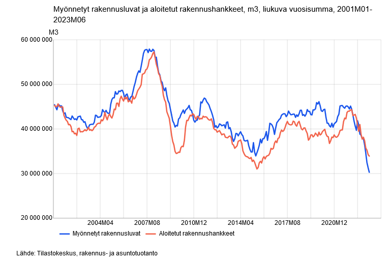 Tällä hetkellä eletään “ennakkotarjouspyyntöjen maailmassa”. Hankkeita käynnistetään normaalia vähemmän ja vastaavasti suhteessa korostuneen paljon selvitetään hankkeiden kustannuksia päätöstenteon avuksi. Jossain vaiheessa, kun raaka-aineiden, rakennustuotteiden ja -materiaalien hinnat ovat laskeneet niin, että rakennusliikkeiden tarjoukset mahtuvat rakennuttajien budjettiin, hankkeita käynnistetään. Nyt sitten itse kullakin ravintoketjun eri vaiheissa on erilainen tilanne ja tilauskanta ja ne, joilla hommat uhkaa loppua, laskevat hintoja vaikka sitten katteista tinkimällä. Kuluu aikaa, ennen kuin raaka-aineiden ja materiaalien hinnat tulevat itsestään niin alas, että rakennuskustannukset täsmäävät nykyiseen korko- ja tuotto-odotusmaailmaan.