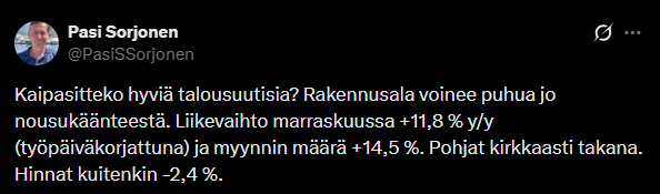 Hello! Some good perspectives have been raised here regarding the drivers behind the growth in construction revenue. Now that several types of builders have already published their results, we can highlight the segments from the comments that are performing well in the Finnish construction market.