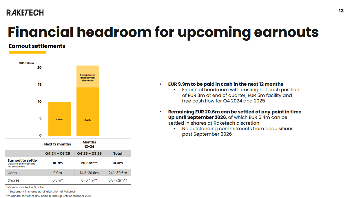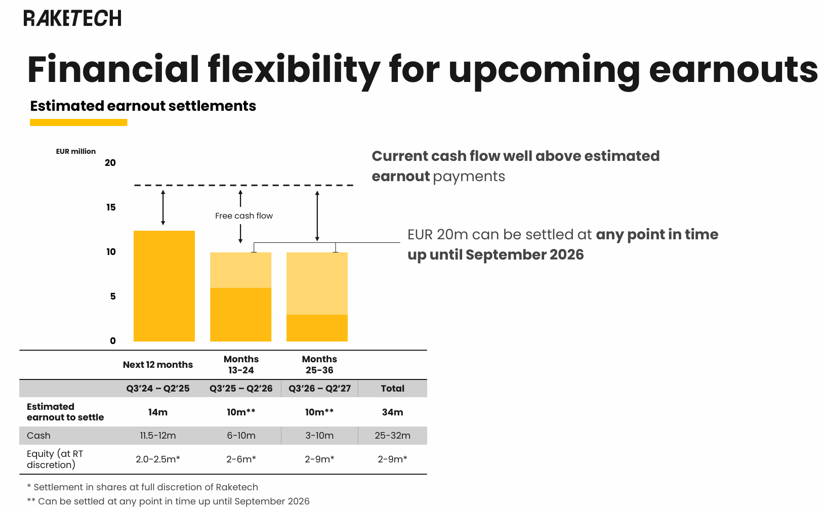 Pääosin koska Raketech teki Casumba median yritysoston vuonna 2019, jossa merkittävässä osassa olivat earnout maksut. Oston jälkeen aluksi Casumba suoritti kuin unelma, jolloin earnout maksut nousivat todella korkeiksi (jäljellä summasta vielä noin 34 Meur). Mutta kun earnoutit oli lyöty lukkoon alkoivat ongelmat Casumban liiketoiminnassa. Nyt sen kasvu ja kannattavuus ovat olleet paljon aiempaa heikompia viimeaikoina.