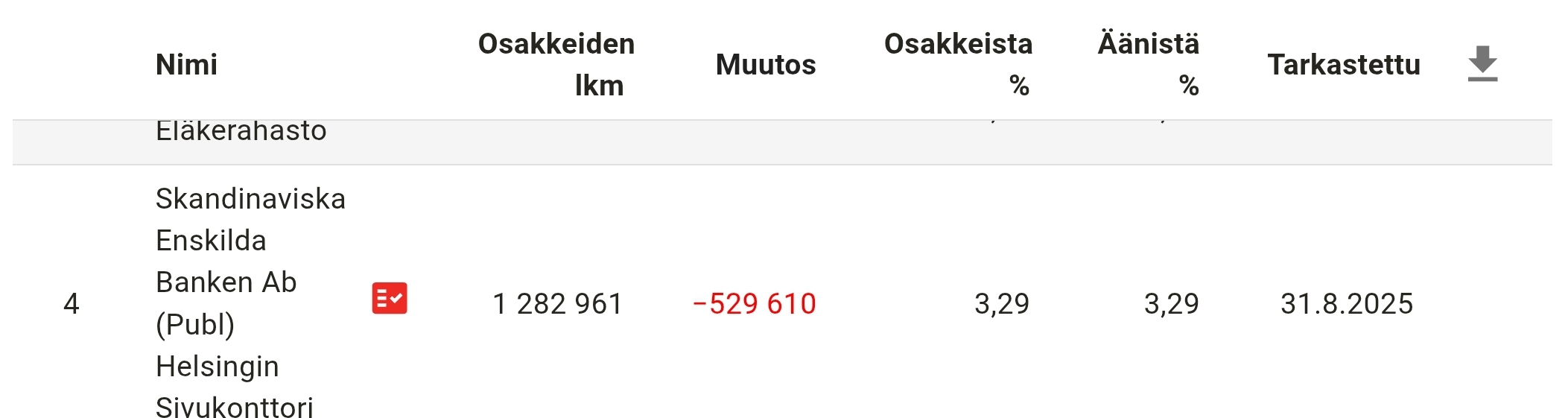 Syys-lokakuussa alkoi sycamoren myynnit. 7.5 miljoona osaketta heillä tuolla SEB hallintarekisterin takana. Muutos sieltä elokuulle täsmää aika hyvin, että pitäisi olla kaikki myytynä. Mikäli ei muut ole sieltä hallintarekisteristä keventäneet.