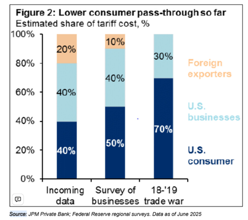 JP Morganin arvion mukaan tariffien vaikutuksesta vasta 40 % on viety jenkkikuluttajalle. Parantunut kilpailukyky ei lohduta, jos kategorian supistuminen hautaa sen alleen.