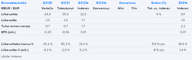 Overall, Raute’s Q2 report was, in my opinion, disappointing due to challenges in profitability. The path to good profitability is also not at all clear due to inflation and delay risks in the rest of the year, and on the other hand, profitability has been somewhat symptomatic even earlier. Earnings forecasts came down despite positive market developments, and at the same time, return expectations also melted away. The morning comment is here.