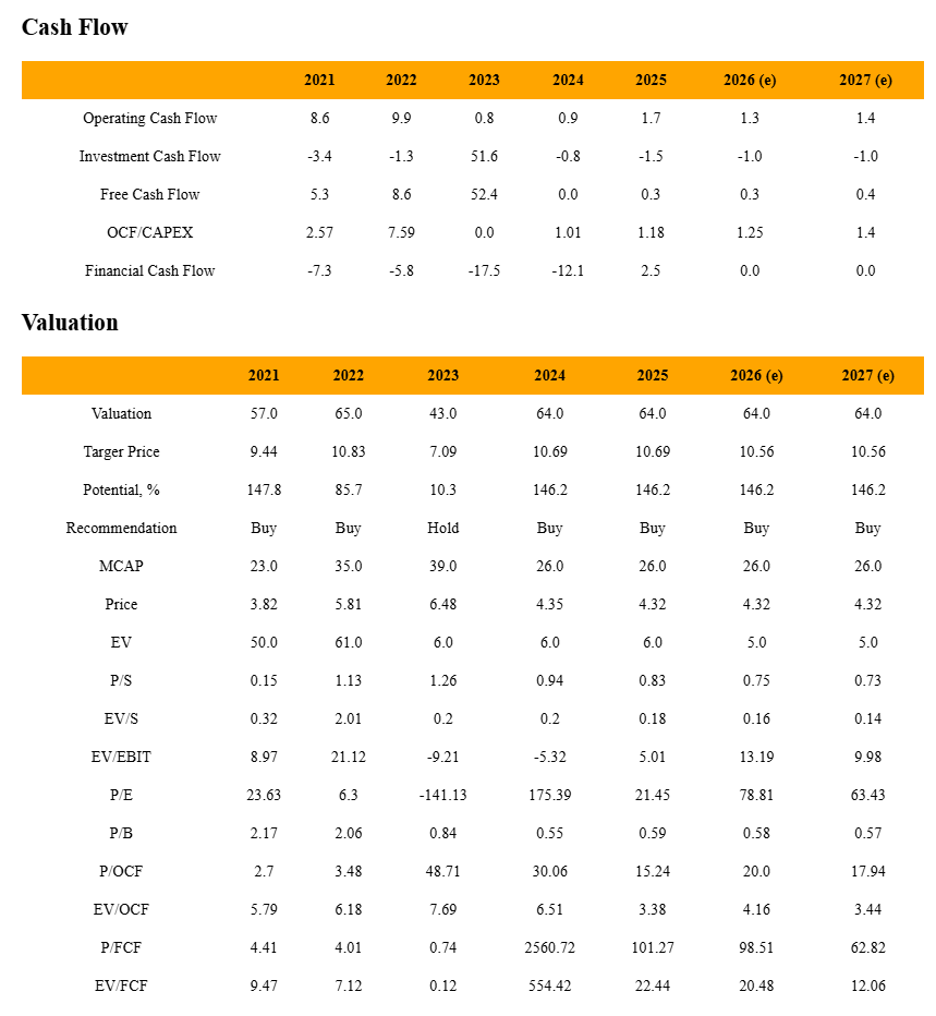 Det finns en nettokassa på ca 20 miljoner och ca 30 miljoner på bankkontot, vilket skulle kunna påverka den nuvarande kursnivån avsevärt. Återköp av egna aktier skulle göra gott för kursutvecklingen. Börsvärdet är bara 26 miljoner och värderingsnivån med P/B-talet är ca 0,6, vilket känns ganska lågt. Givetvis kan det vara så att den operativa verksamheten aldrig vänder till det bättre resultatmässigt och att pengarna blir liggande på kontot. EV/EBIT 10–13 ser dock ganska lockande ut för de kommande åren. Reka får en köprekommendation med en riktkurs på 10,56 euro. Reka Industrial Oyj - Finansiell sammanfattning och värdering