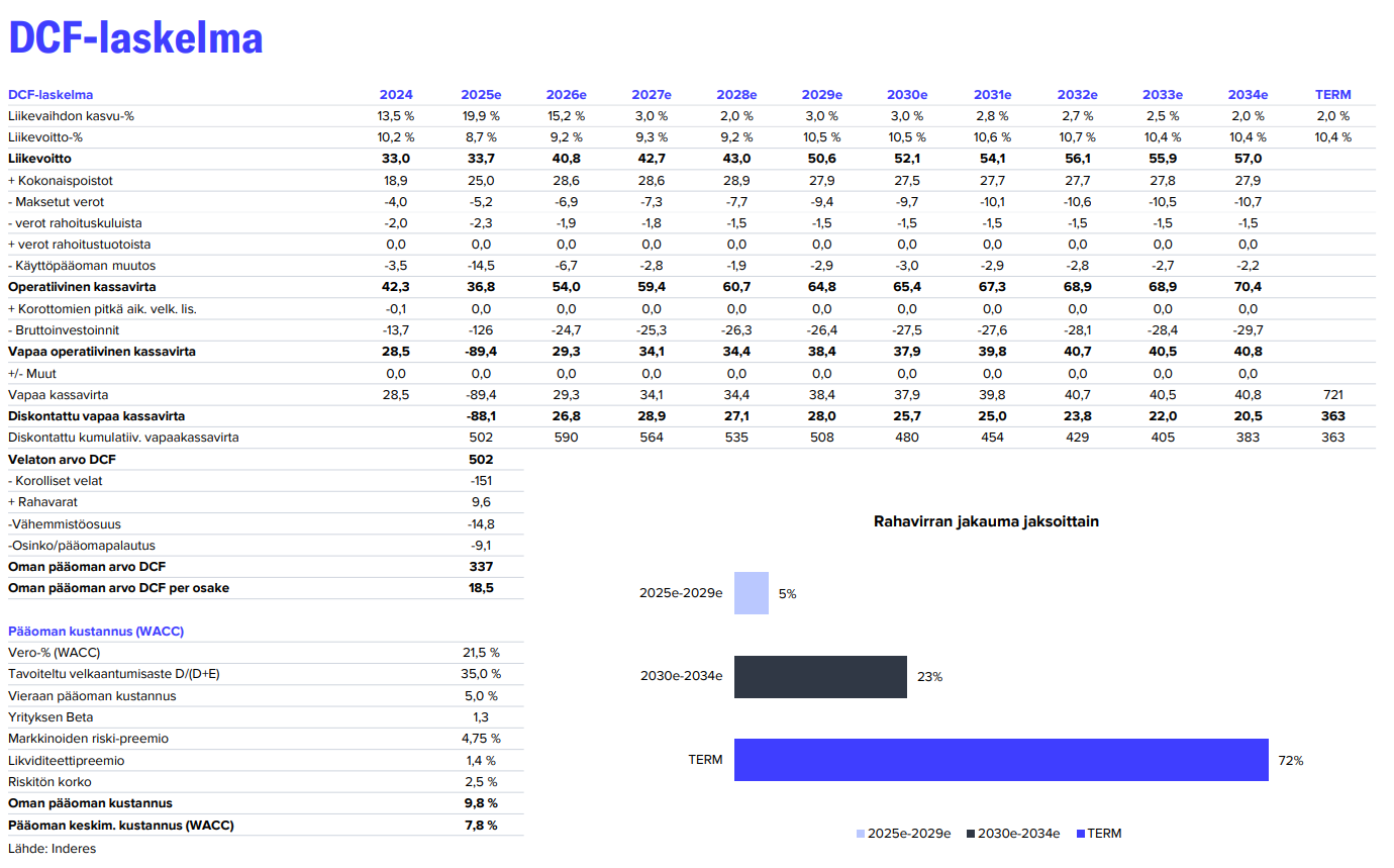 Loppuun vielä arvostuksesta lyhyesti. Inderesin DCF-mallissa ei ole mallinnettu lainkaan potentiaalisia yritysostoja ja sillä pystytää silti perustelemaan nykyistä aliarvostusta sekä positiivista suositusta.