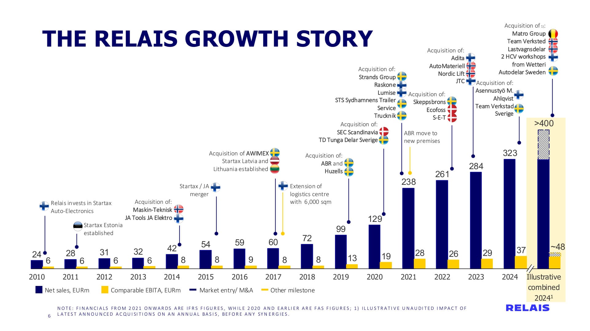 Konsernin tytäryhtiö Team Verkstad on sopinut ostavansa TJ Fordonsservice AB:n, joka tarjoaa huolto- ja korjaamopalveluita rekoille ja muille raskaille hyötyajoneuvoille. Pieni yritysosto on Relaisin strategian ja arvonluontimallin mukainen, kun yhtiö investoi vahvistaakseen maantieteellistä asemaansa Ruotsin markkinalla oletettavasti hyvällä pääomantuottotasolla.