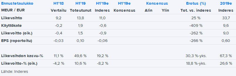 Hallitus päätti uusiin projekteihin liittyvien tuotekehityskustannusten aktivoinnin aloittamisesta 1. tammikuuta 2019 alkaen. Tällä oli 445 tuhannen euron positiivinen vaikutus liikevoittoon.