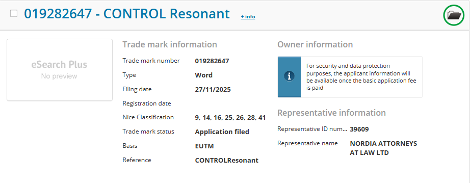 Remedy’s law firm yesterday registered the trademark CONTROL Resonant.