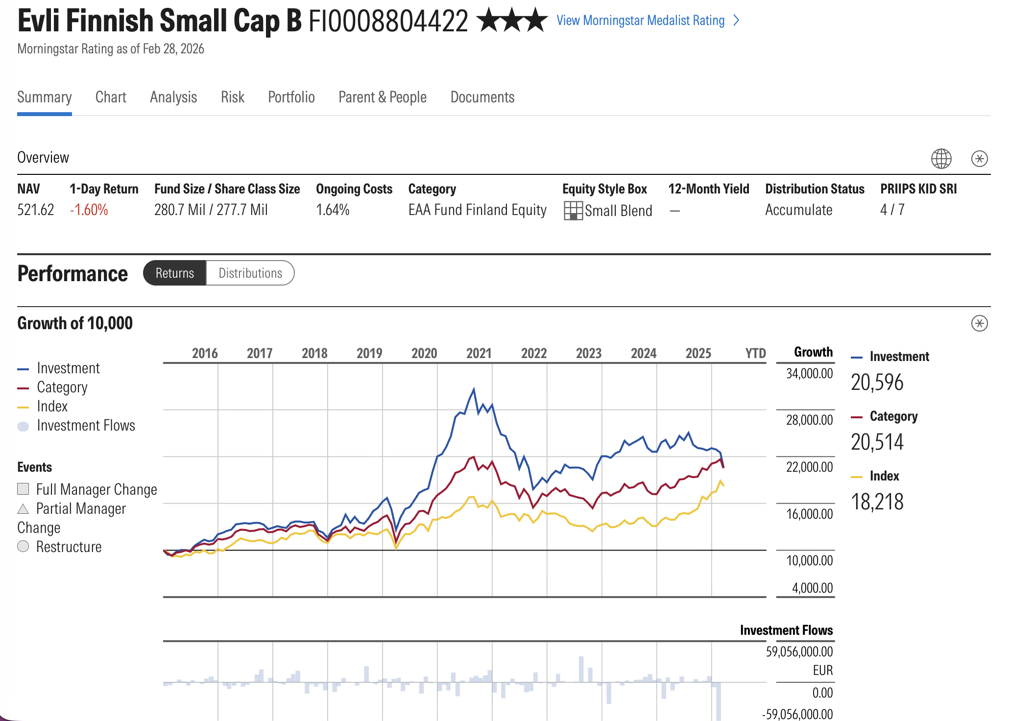 Jonka oma kehitys näyttää Morningstarin mukaan tältä, ja jos näyttäisi raha vuotavan ulos vauhdilla: