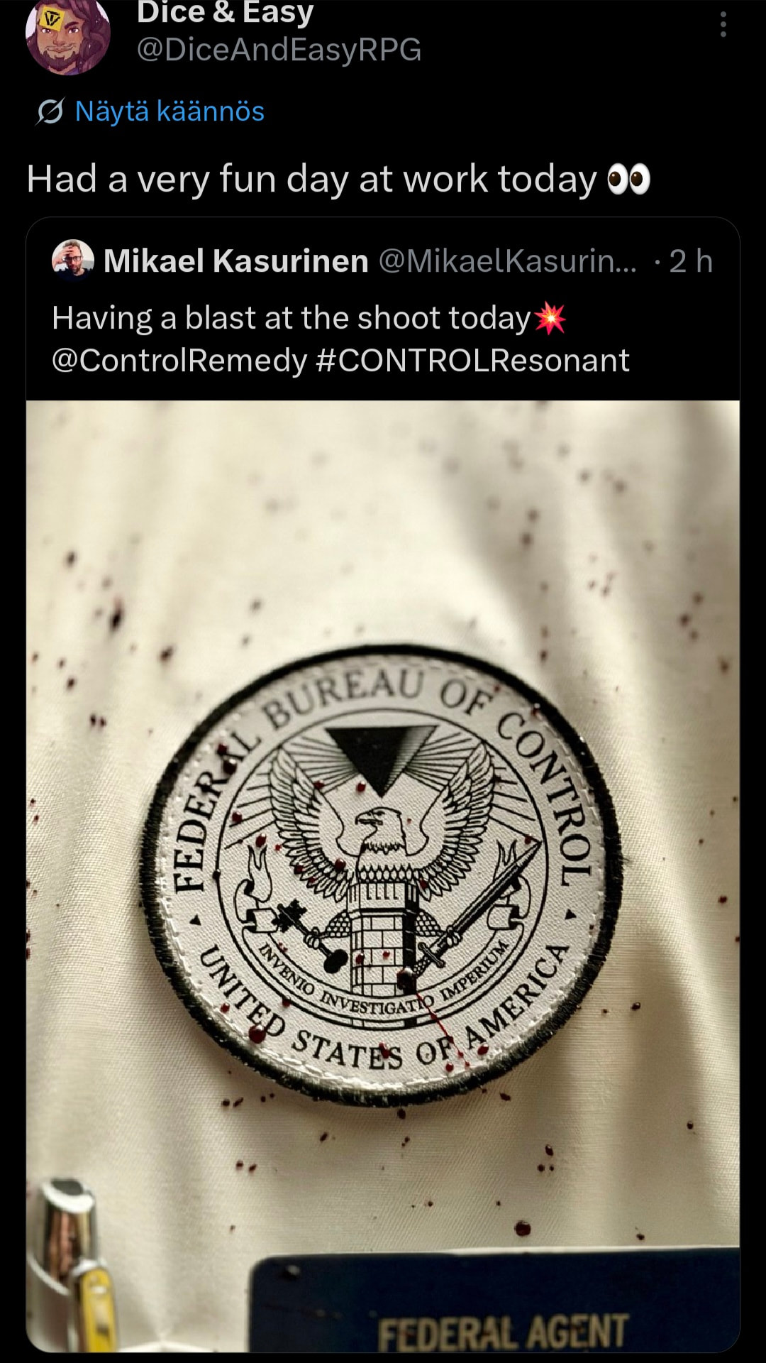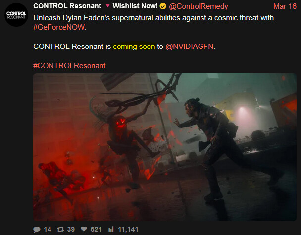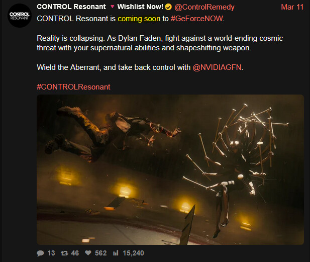 Muutamia Control Resonant sisältöjä tullut viimeaikoina. Uutta gameplayta monesta lähteestä, esimerkiksi https://www.youtube.com/watch?v=ZwFXB2Z7hzo.
