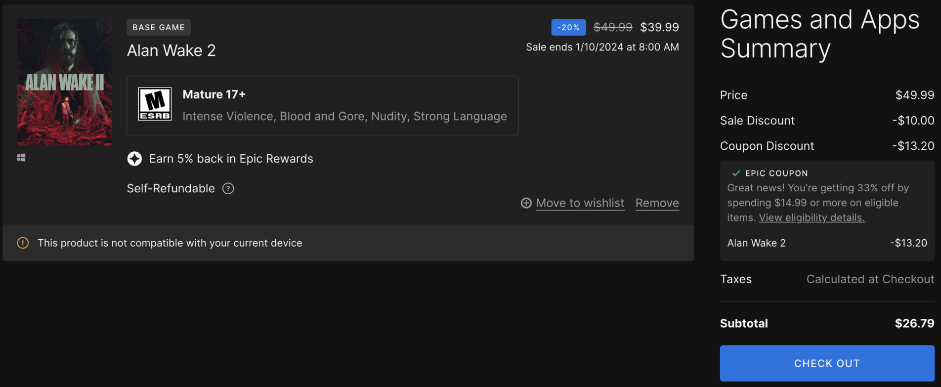 Se merkityksellinen hintahan Remedylle on tuo -20% hinta, eikä tuon lisäalen kanssa. Omasta puolestani Epic saa iskeä vaikka -90%:n kuponkia kylkeen. Remedylle samat rahat, mutta peliä menee varmasti enemmän kaupaksi.