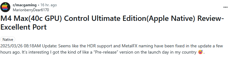 EDIT: Already found some promising initial impressions of the quality of this port on Reddit. AC: Shadows, on the other hand, received a less positive reception for its Mac quality.
