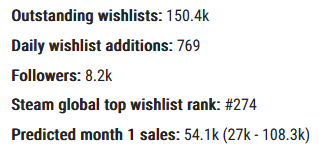 No ei varmaankaan kovin tarkasti, mutta voihan asiaa spekuloida. Voidaan tehdä äärimmäisen karkeita arvioita siitä, miten peli möisi, jos se julkaistaisiin tänään nykyisilä seuraaja- ja wishlistaajamäärillä.