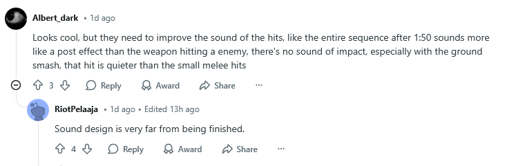 Det är troligen 4–6 månader kvar till release, eller lite drygt det. Det här är precis den “polish”-fas där stridernas responsivitet kan finjusteras. Hitstops, camera-shake, sound design, camera zoom, mer eller mindre VFX.