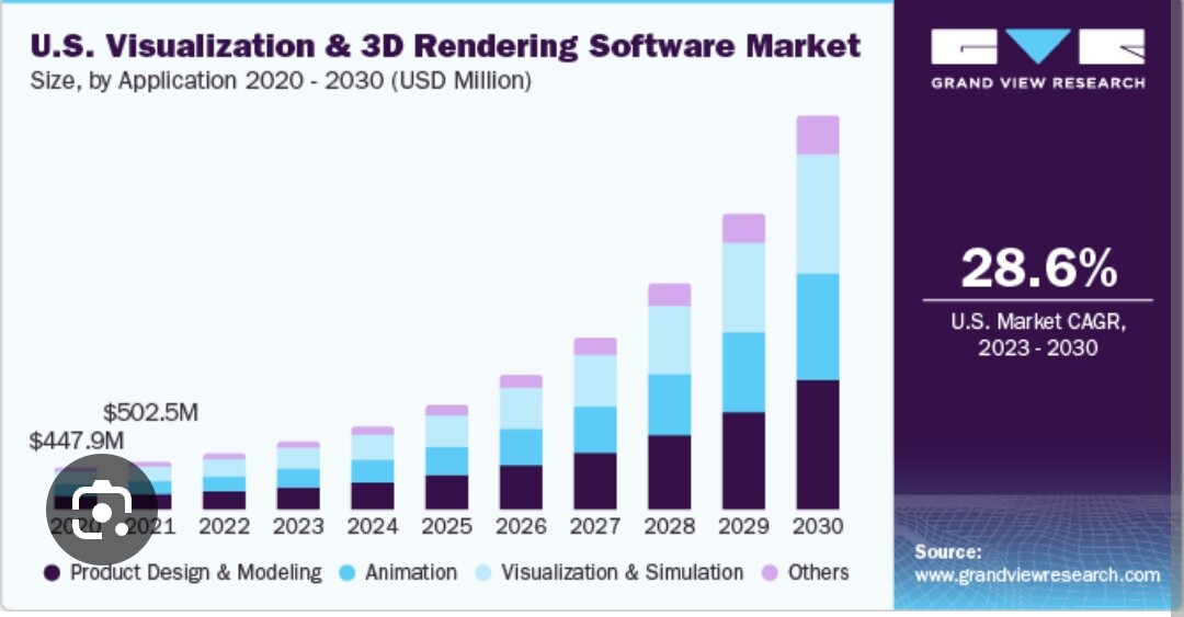 On odotettu että 3d visualisointi markkina tulee kasvamaan n. 28% vuositasolla vuoteen 2030 mennessä.