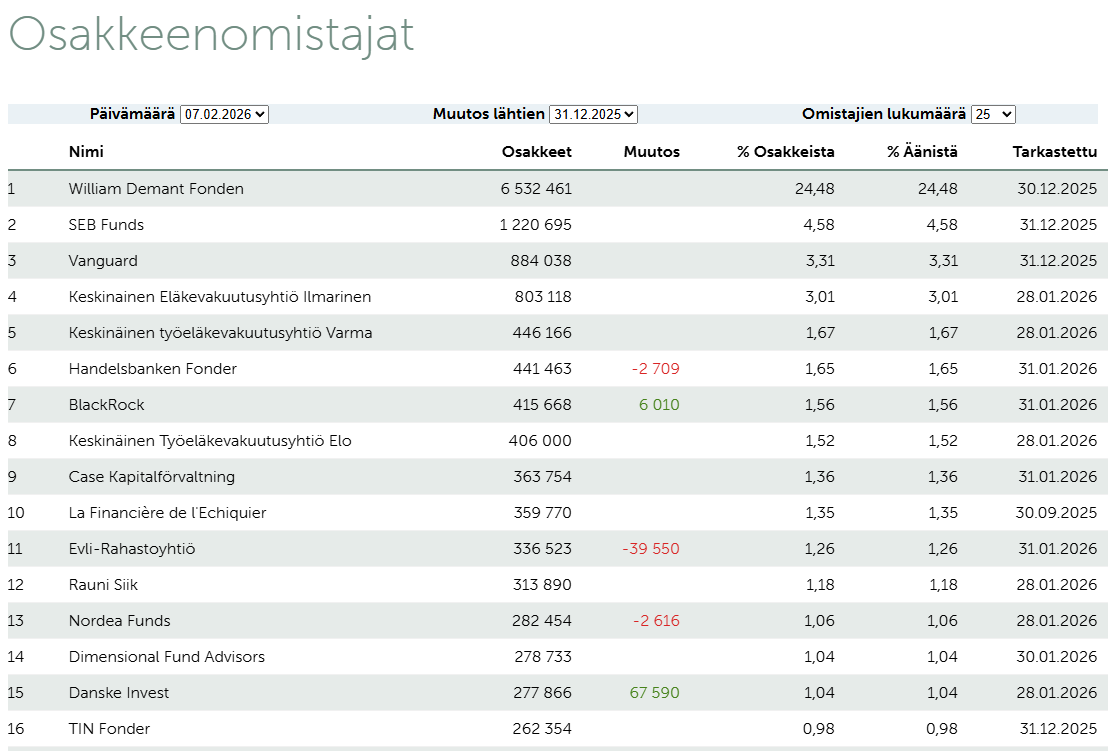 Mikä tekee mielestäni Revenion laskusta erikoisen on, että suurimpien omistajien listalla ei ilmene merkittäviä keventäjiä.