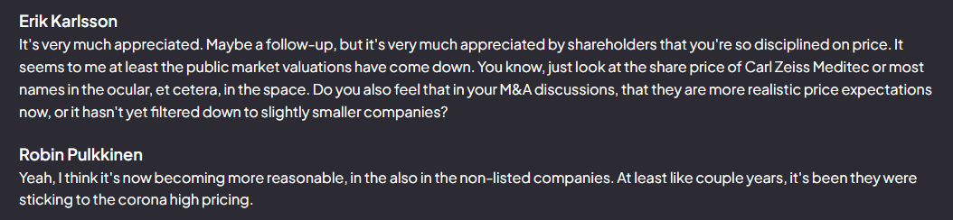 Først og fremmest skal der lyde en tak til Juha for opdateringen før kvartalsregnskabet. Det gav mig ny viden om situationen hos Zeiss.