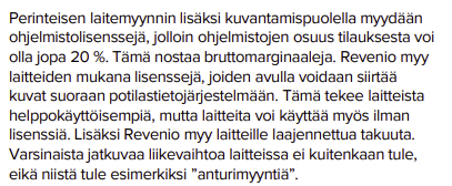 Mutta toivoisin itse myös että Revenio raportoisi toistuvan liikevaihdon osuutta useammin ja selkeämmin, jotta sijoittana ymmärtäisi sen luonnetta paremmin.