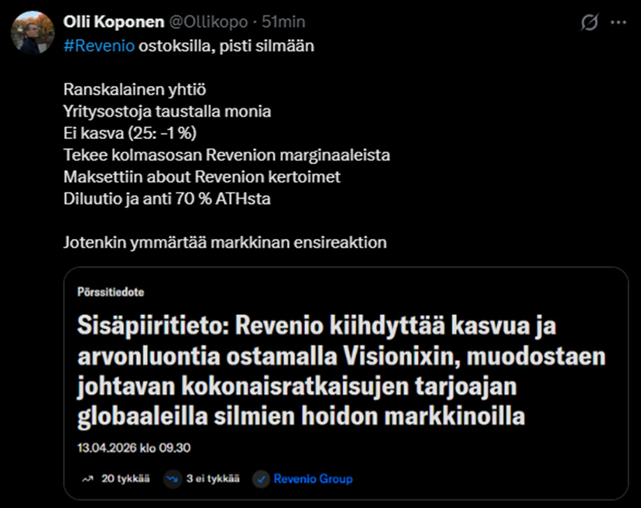 Revenio Group – Företagsförvärv 2026 Revenio Group - Yrityskauppa 2026