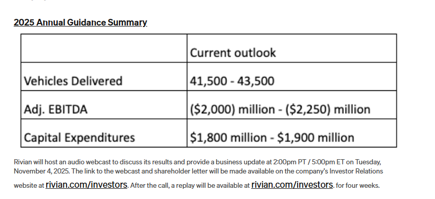 Rivian’s new guidance includes deliveries of between 40,000 units and 46,000 units and expenditures of between $1.8 billion and $1.9 billion.