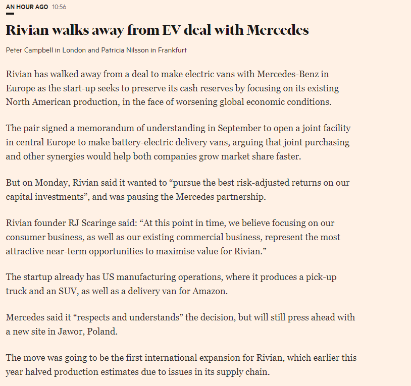 Development has occurred, but Rivian is still relatively expensive compared to its operations, even though its market value has dropped to 33 billion. It is therefore definitely a growth company for which the market situation is not forgiving.