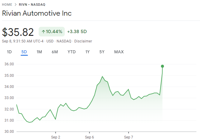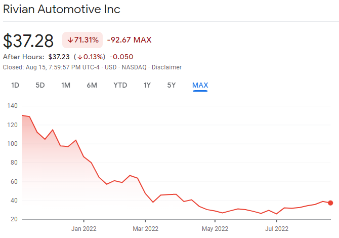 By the end of trading on August 15, Rivian’s stock price has recovered somewhat, being around $37.28.