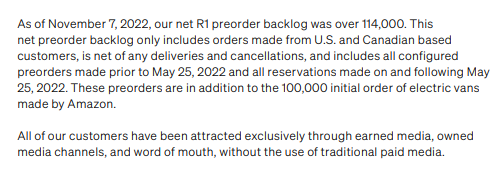 Orders don’t seem to be an issue; Rivian has 90,000 reservations for R1T and R1S models. Rivian also received 8,000 new car orders during Q2 '22, so despite the worse market situation, expensive Rivian cars seem to be selling well. Also, reading comments from Rivian customers, these adventure vehicles are quite popular.