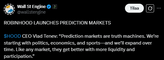 I’m not entirely sure if I understood correctly, but Robinhood has launched some kind of prediction markets where users can bet on political, economic, and sports events. CEO Vlad Tenev believes the markets will improve as participation grows.