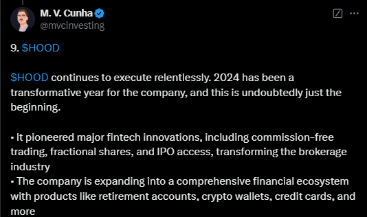 The tweet also states that 2024 has been a pivotal year for the company, as it has expanded its services to include “retirement accounts”, crypto wallets, and credit cards. International growth and a young user base strengthen its position as a global fintech leader.