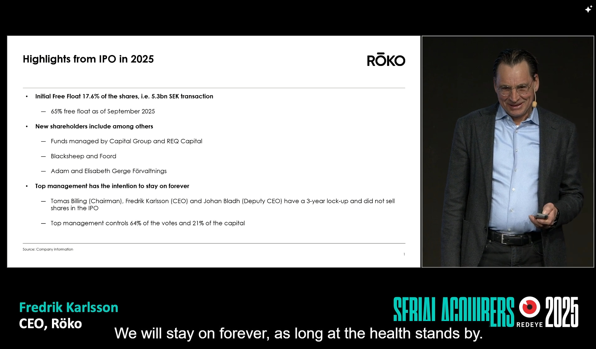 Fredrik kasvatti Lifcon arvon n. 100-kertaiseksi 20 vuodessa, joten näyttöjä piisaa. Nyt sarjayhdistelijöiden kuninkaan opit on viety jalostettuna Lifcoon verrattuna vielä pikkuruiseen Rökoon. Lifcon EBITA on 6 miljardia SEK, Röko on n. viidennes siitä.