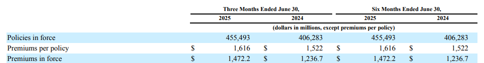 Policies in force växer naturligtvis snabbare hos Lemonade, med tanke på att de har ett bredare utbud av försäkringsprodukter, såsom hem- och husdjursförsäkringar, där intäkterna per försäkring är betydligt lägre jämfört med bilförsäkringar.