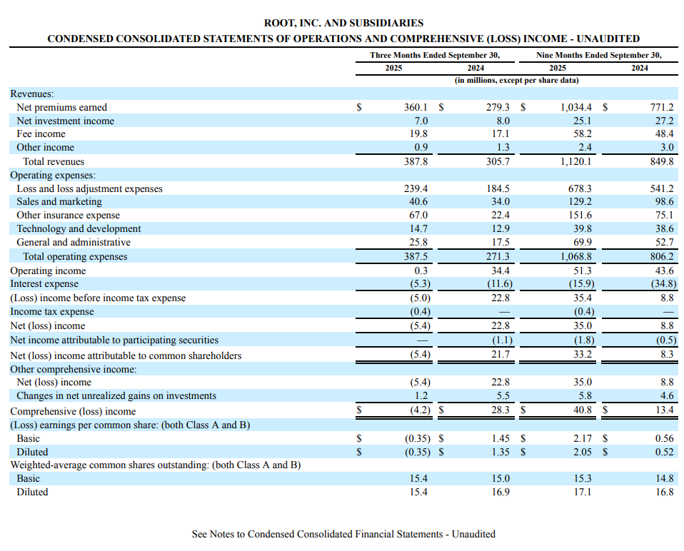 Root söker endast lönsam tillväxt, vilket syns på sista raden; de säger medvetet upp olönsamma kunder och skalar ner marknadsföringskostnaderna när de ser att det inte är lönsamt. Lemonade söker mer tillväxt oavsett pris, och det syns också i deras ökade marknadsföringskostnader. Lemonade har en lång väg till lönsamhet och mycket måste fortfarande hända (många år) för att det eventuellt ska ske.