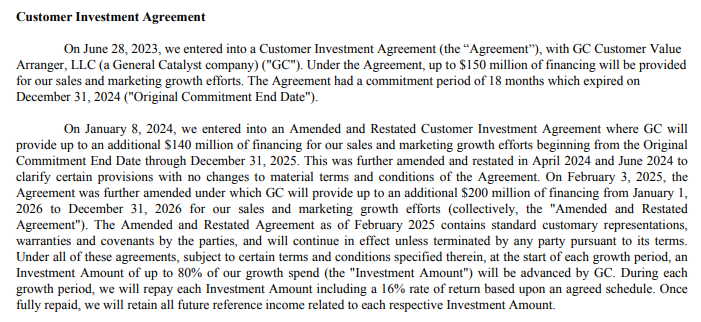 Man kan ha olika åsikter om det höga priset, pengar är förstås inte gratis. Men enligt LMND och flera investerare är detta ett rättvist och förnuftigt sätt att finansiera en explosiv tillväxt. Mer detaljerat LMND:s officiella syn finns i investor day 2024-materialet från sida 163 och framåt. LMND ser GC som så fördelaktigt att en stor fortsättning har avtalats för 2026.