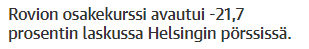 En ymmärrä -20% pudotusta, ei tämä mailma nyt niin kvartterikaupalla mene.