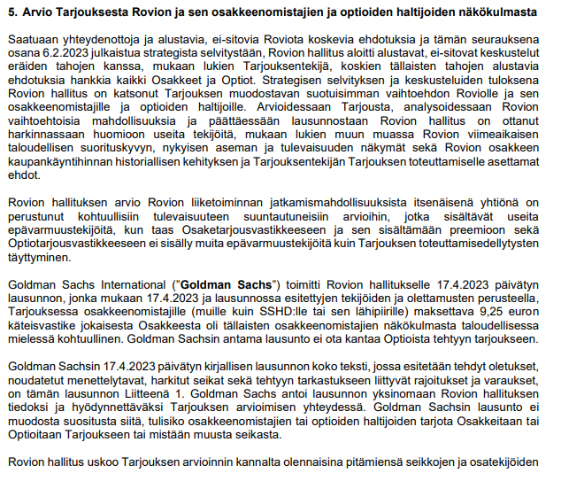Rovion hallituksen tänään julkaistu lausunto ostotarjouksesta löytyy täältä: