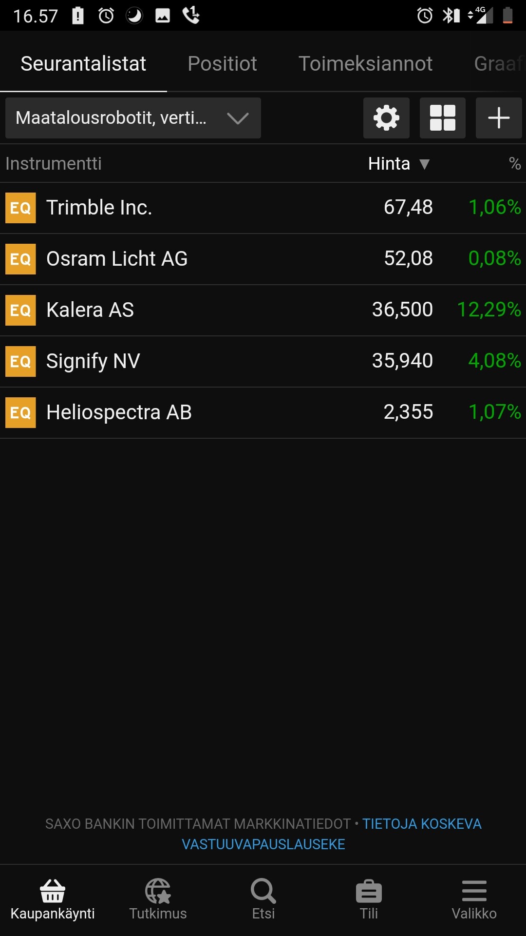 Maanmittausinsinöörinä todettava että trimble on alan suurin peluri leican(toinen seuraamisen arvoinen yhtiö) kanssa. Trimble valmistaa maanmittausvälineistöä sekä softaa mittausdatan käsittelyyn. Valtaosa suomessa nähtävistä takymetreista (ne kameran näköiset laitteet) on trimblen valmistamia ja erityisesti kunnat suosivat kyseistä yritystä. Lähes kaikissa infrahankkeissa vaaditaan maanmittaajaa useammassakin vaiheessa ja maanmittaaja tarvitsee trimblea. sori offtopic