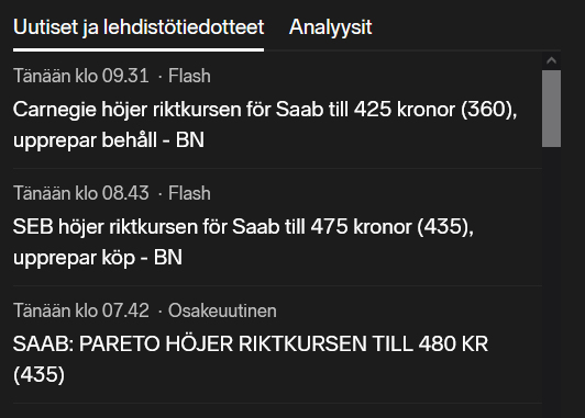 Analyysissa treidityökalun uusin osakeidea: Saab
